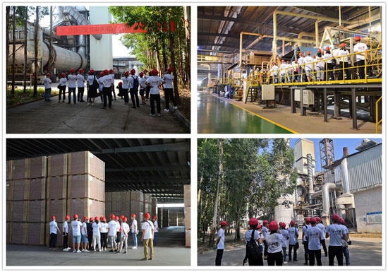 在華洲木業代表的帶領下,美佰利精英團隊浩浩蕩蕩地走進板材生產區,一睹華洲安醛板生產制造的魅力風采。無論是嚴謹繁雜的生產工序,還是中外結合的生產設備,亦或是成熟精細的生產工藝,都讓美佰利團隊贊嘆不已,對接下來與華洲的深入合作更是信心倍增。