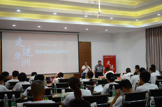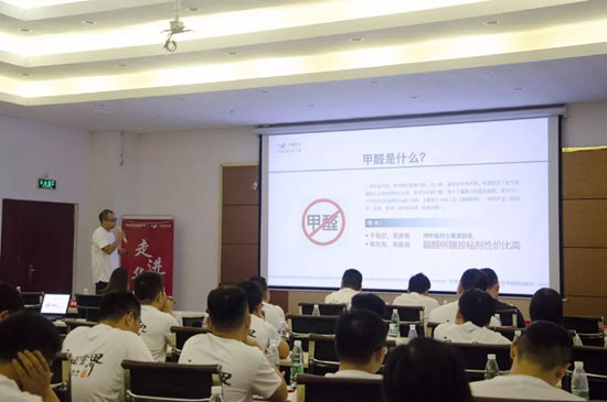為了讓美佰利團隊能更深入了解華洲板材的環保魅力,華洲派出工程師劉威先生主講“營銷專場培訓”環節,圍繞“科學認識甲醛的危害”、“華洲安醛板優勢及銷售話術”、“華洲安醛板性能終端試驗操作”等話題做深入淺出的分析講解。