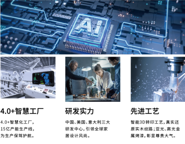 作為家居時尚的引領者,波茵在中國、意大利和美國有著三個研發中心,以及一支中外設計師團隊,產品線涵蓋廚房、臥室、兒童房、書房、客廳、餐廳、門廊、浴室和陽臺等空間,產品有四種風格十二個系列的輕奢、極簡、北歐、現代,完全滿足不同階層人群的不同需求。