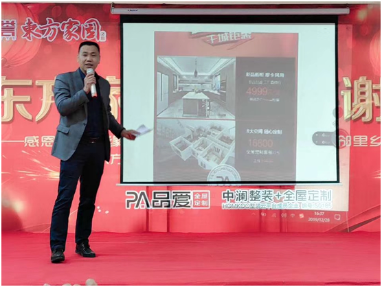 其中,品愛全屋定制市場經(jīng)理楊健全先生在臺上的一番演講,博得了場下業(yè)主們的熱烈掌聲。楊總從品牌影響力、產(chǎn)品優(yōu)勢、本次活動的優(yōu)惠政策等方面著手,向業(yè)主們展示了品愛全屋定制高端的品牌形象。