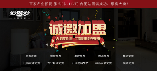 本次張杰未LIVE合肥演唱會,不僅讓愛就愛全屋定制品牌與年輕群體走在一起,也為全國加盟店及終端渠道營銷帶來一些新的嘗試與可能。 在近距離感受明星魅力的同時,愛就愛全屋定制也會邀請全國優秀加盟商們到現場一同觀看演出以感謝廣大加盟商一直來對愛就愛品牌的認可、支持與信賴!