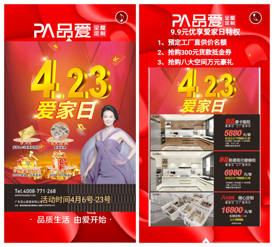 同時(shí),四月也是品愛(ài)全屋定制的“愛(ài)家月”。品愛(ài)全屋定制將每年的4月23日作為“愛(ài)家日”,旨在呼吁更多的人關(guān)懷家庭并反思自己的愛(ài)家方式。最近,品愛(ài)全屋定制就發(fā)布了“愛(ài)家日”系列優(yōu)惠政策,讓更多人能直接參與其中。