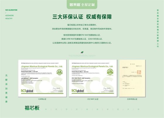 客來(lái)福,18年專(zhuān)注全屋健康定制,秉承“客戶是天,產(chǎn)品是命”的宗旨,致力于為更多家庭帶去更好的家居空間解決方案。尖端工藝融合國(guó)際前沿設(shè)計(jì),擁有60多項(xiàng)國(guó)家專(zhuān)利,領(lǐng)跑行業(yè)技術(shù)標(biāo)準(zhǔn)的客來(lái)福家居,正在問(wèn)鼎中國(guó)環(huán)保定制家居行業(yè)的路上,高歌猛進(jìn),見(jiàn)證品牌升級(jí)的力量與榮光!以行業(yè)標(biāo)桿之姿創(chuàng)新求索,不斷向前!