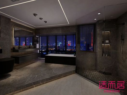 轉過去打通了一整個房間做衛生間,獨立淋浴房,獨立浴缸,超長洗手臺面,滿滿的高級感,以及對生活的品味,精致的要求,生活再累,也要做一個精致的豬豬女孩or男孩哦~