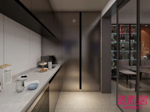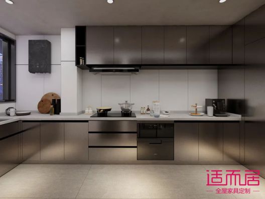 廚房采用新品銀灰拉絲做門板,有一種不銹鋼櫥柜的即視感,看起來就很好打掃衛生的感覺,家庭主婦看到就偷笑,男士看到這個配色也應該是喜歡的,大家好才是真的好~