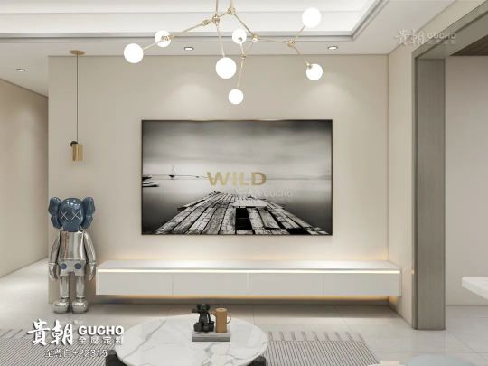 懸空的電視地柜設計,陽臺的書柜+小吧臺隔斷,更甚是同色系的陽臺門套,所有融合的空間結構和顏色,都串聯起人對于家的所有想象,營造無微不至的心動之境。