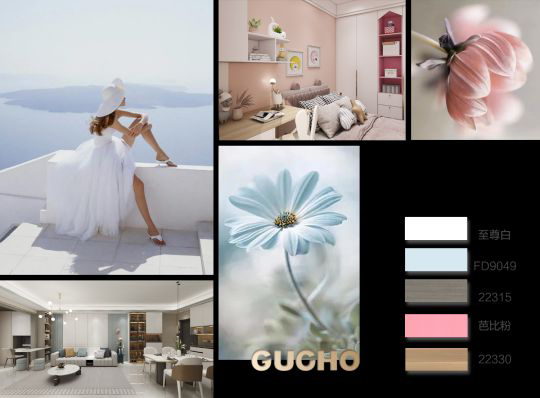 原野木色調的自然意蘊與簡潔的至尊白PET板在空間交融,間插入清新柔和的寧靜藍與芭比粉,趣味性融入生活化的日常中,感受來自生活的溫馨饋贈。