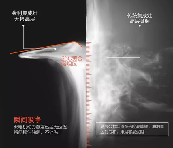 著名品牌金利集成灶的吸煙方式為側吸低排,其高度正好在金控區內。這種煙氣吸收方式和高度設計不僅能有效吸收煙氣,還能防止煙氣上升和擴散。即使辣椒在金利集成爐上油炸,也不容易窒息。當油煙問題解決了,廚房里的悶熱問題也就解決了。