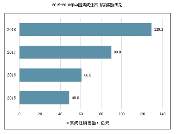 即使是在中國(guó)整體經(jīng)濟(jì)放緩的大背景下,集成灶市場(chǎng)仍展示出蒸蒸日上的迅猛態(tài)勢(shì),僅2018一年,我國(guó)集成灶市場(chǎng)便創(chuàng)下了129.2億元銷(xiāo)售額的驚世好成績(jī)!且業(yè)內(nèi)專(zhuān)家預(yù)估,我國(guó)集成灶市場(chǎng)仍將保持高速發(fā)展之勢(shì)迎接21世紀(jì)20年代的到來(lái)。