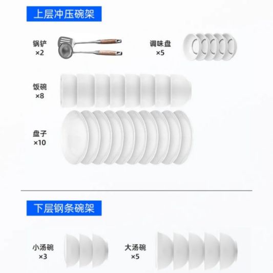 柯菱集成灶110L消毒柜體的合理設(shè)計,能裝下整整20個盤子+16個飯碗+5個碟子+60只筷子,讓你的餐具不必到處流浪。最大化的滿足了大家庭的餐具存放空間需求。收納更多,也能輕松擺放。