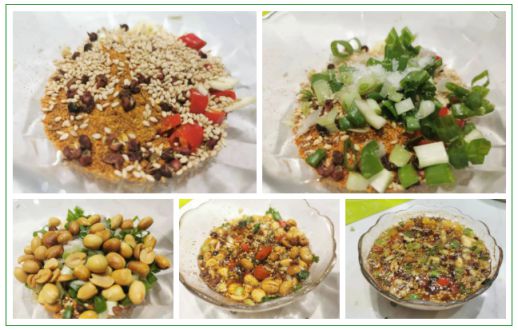 姜 蒜 辣椒面 小米椒 花椒 白芝麻 熟花生粒 蔥