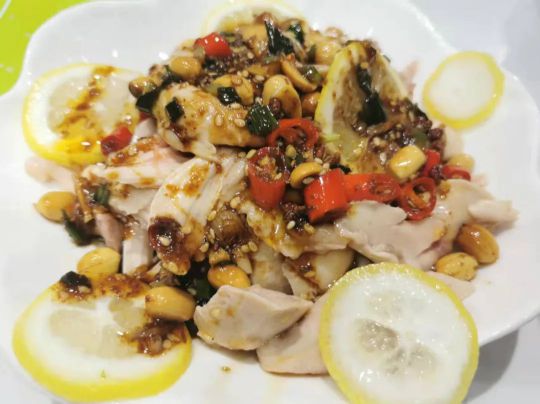 04 調好的料汁淋在雞肉上,口水雞新鮮出爐