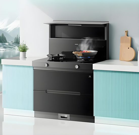 集成灶在優(yōu)化水平空間的同時,也沒有忽視垂直空間的利用。許多集成灶產(chǎn)品都配備了多功能的下拉式儲物柜或消毒柜,這些設(shè)計巧妙地利用了灶具下方的空間,為廚房提供了額外的儲物或消毒功能。相比傳統(tǒng)廚房中,這部分空間往往被忽略或僅用于放置不常用的物品,集成灶的垂直空間利用無疑更加高效,使得廚房物品的收納更加有序,找取更加方便。