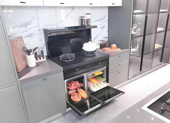 凱度G1E系列以“萬元級性能、七千元定價”突圍,采用雙風道增壓系統,風壓達420Pa,實測開放式廚房PM2.5濃度可控制在15μg/m3以下。蒸烤箱部分搭載直噴蒸汽與雙熱風循環,支持發酵、解凍等12種模式,被評測機構評為“入門級全能選手”]。