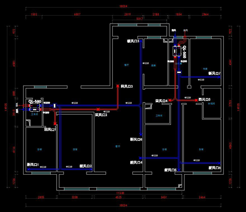 中央新風施工前由設計師根據戶型及現場實際、配合裝修、空調等單位設計新風方案。