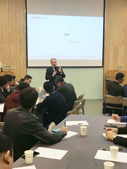總經(jīng)理張華春先生與大家分享美景“訓(xùn)政”管理經(jīng)驗。
