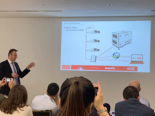 德菲蘭核心經銷商22人于2018年12月, 組隊前往德國Dephina太陽神中央新風系統工廠,學習新品AIR1全能中央新風系統,Helios