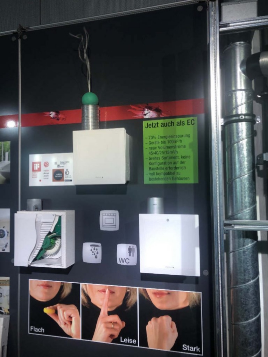 培訓期間,學員們仔細研習了新品ELS排風扇,推敲適合中國吊頂結構的訂貨配件。ELS暢銷德國35年,以其UltraSilence特殊的工藝,形成杰出的低噪音和低能耗特點。還有例如延遲和定時功能、自動人體感應通風、濕度自動控制,這些功能靈活選配。