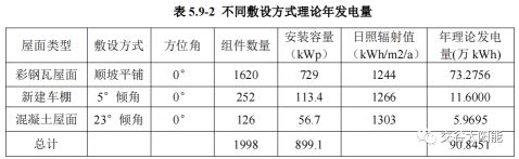 本工程規(guī)劃裝機(jī)容量為0.8991MWp,采用分塊發(fā)電、集中并網(wǎng)方案。電池組件采用450Wp單晶組件,彩鋼瓦屋面采用順坡平鋪、混凝土屋面采用最佳傾角為23°固定安裝在支架上,車棚組件安裝于檁條上兼做車棚頂,方位角與原有建筑保持一致。每個(gè)子方陣由若干路太陽(yáng)電池組串并聯(lián)而成。每個(gè)太陽(yáng)電池子方陣由太陽(yáng)電池組串、逆變?cè)O(shè)備、匯流并網(wǎng)設(shè)備構(gòu)成。