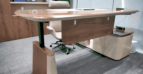 “它不并是一個單品, 與其配套的還有一個班臺,這個班臺也是 可以通過遙控或者是語音,實(shí)現(xiàn)升降功能。”