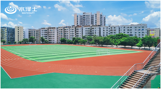作為德朝體育集團旗下的子品牌,“水澤士”專注水性運動地材,成為國內率先研發生產水性運動地材的品牌,并在業內實施“好材料、好施工、好驗收”的“新三好”產品標準,為客戶提供安全、環保的水性運動地材。