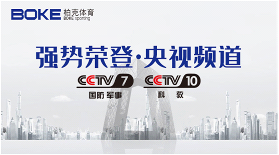 柏克體育憑借在產品品質、技術工藝、生產規模、研發實力、服務水平等考核方面的優異表現,成功登陸央視展播,順利在CCTV-7、CCTV-10兩大人氣頻道對品牌展播,向全國觀眾展示品牌風采。
