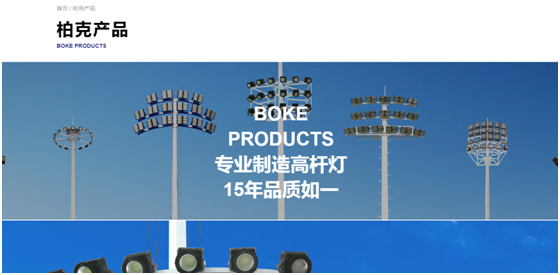 產(chǎn)品是企業(yè)生存的根本。多年來(lái),柏克體育匠心制造,不斷向市場(chǎng)輸送高桿燈、常規(guī)燈桿、燈具、配件等多元化產(chǎn)品,為彌補(bǔ)市場(chǎng)空白貢獻(xiàn)出重要力量。作為成熟系統(tǒng)的品牌官網(wǎng),對(duì)產(chǎn)品的展示自然不可或缺。
