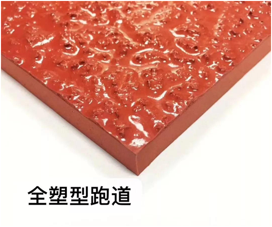 全塑型塑膠跑道是一種新型無顆粒型跑道,嚴格依照德國(DIN18032)的標準而設計,將跑道升級為專業的“三層復合”結構,還設計獨特的閉孔性微泡彈性夾層,讓運動過程中產生源源不斷地動能,且更好的保護運動中受傷。其完全達到國際田聯最新頒布的沖擊吸收率的達標要求35%~50%,為國內獨創現場澆鑄型專業跑道結構。