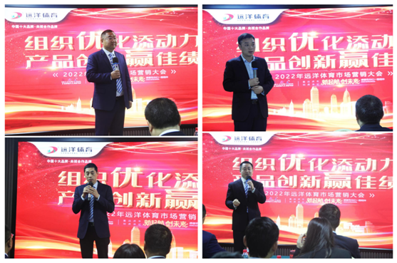 會議初始,遠洋體育董事長余向強、制造及營銷總經理辛業林、營銷副總熊宏偉、運營總經理晁實分別為本次會議致辭。