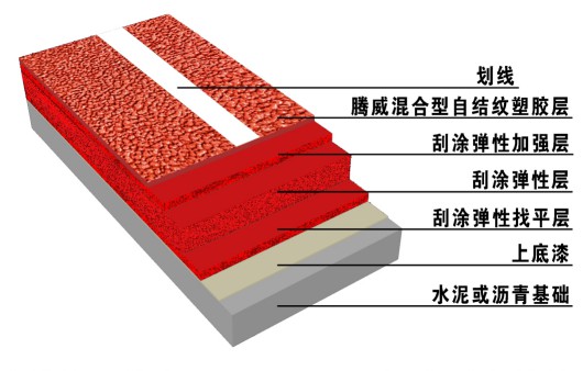 混凝土基礎(chǔ)混合型自結(jié)紋塑膠跑道施工流程