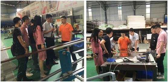 在工作人員的指引與解說之下,通過參觀原材料鋁型材、車間制作流程、體驗館展品等方式,箭牌衛浴考察團對德奧羅蘭的研發設計與制造實力表示深度認可。德奧羅蘭的生產基地處處體現出精益求精的工匠精神、強勁的制造基礎,是其能夠贏取箭牌衛浴合作的重要因素。