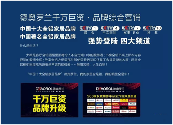 德奧羅蘭:CCTV四大視頻展播品牌、“中國十大全鋁家居品牌”之一,積極響應《健康中國行動》國家重大戰略,旗下的“鋁創經典”為國人的健康家居生活謀安“醛”,通過打造全屋全鋁家居制定,讓萬戶千家擁有“健康安醛·綠色環保”的家居生活!