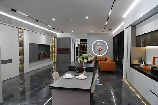 智能家居的普及為全鋁家居注入新活力。中幸全鋁整裝在浴室柜中嵌入感應燈帶與無線充電模塊,柜體內部配置紫外線殺菌系統,將實用功能與科技體驗深度融合。嘉斯頓家居更嘗試將全鋁材質與智能家居系統聯動,用戶可通過手機APP調節櫥柜燈光色溫,實現“家居場景一鍵切換”。