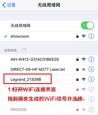 1.打開WiFi連接界面,找到網關生成的WiFi信號并連接