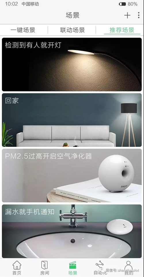 UIOT智能家居為COCO蜜城·睿谷專屬定制智能化場景體驗,輕松設置回家、離家、會客、就餐、休閑、娛樂等多種智能情景模式。