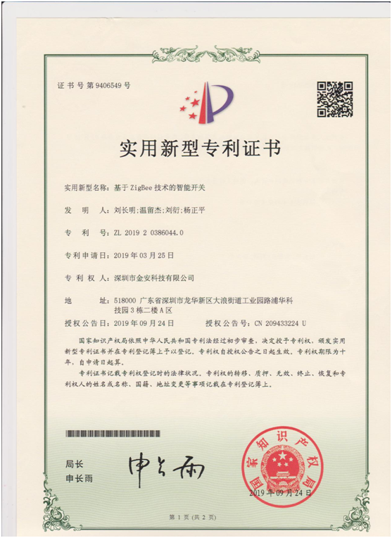 喜訊頻傳,又奏佳音,在簡(jiǎn)舒智能家居研發(fā)團(tuán)隊(duì)的不斷努力突破下,2019年再次喜獲由中華人民共和國(guó)國(guó)家知識(shí)產(chǎn)權(quán)局授予的多項(xiàng)技術(shù)專(zhuān)利證書(shū),其中包括四項(xiàng)實(shí)用新型專(zhuān)利證書(shū)和一項(xiàng)計(jì)算機(jī)軟件著作權(quán)登記證書(shū),四項(xiàng)實(shí)用新型證書(shū)分別是: