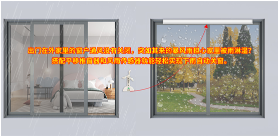經常出門去上班了,留著家里的窗戶通風沒有關閉,突如其來的暴風雨會把家中的電器、沙發給淋壞,在辦公室的你只能干著急?你可以安裝簡舒智能窗戶搭配一個風雨傳感器就能輕松實現下雨自動關窗,每次下雨時,都會觸發風雨傳感器,風雨傳感器會把下雨信號傳達給智能窗戶,智能窗戶會立即自動關閉窗戶,家中有個智慧管家,是不是瞬間就讓你的工作變得更加安心,生活更加舒心?