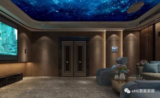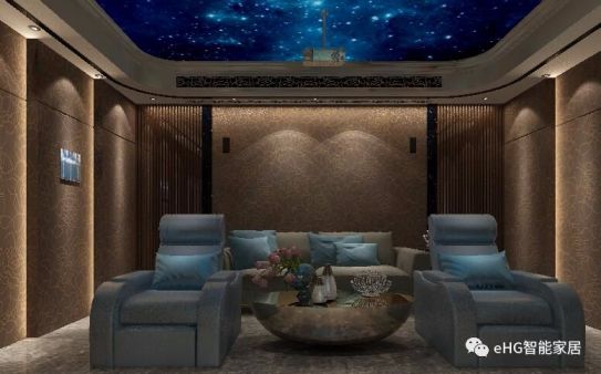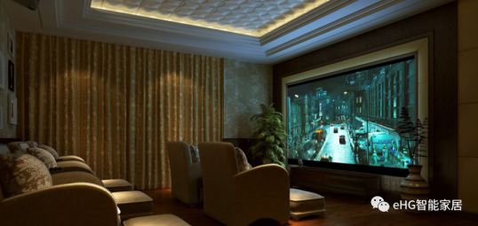 影音室再配以高端,與室內設計匹配的壁畫,座椅沙發,以及主人喜愛的茶幾,各類配飾。時尚前衛的智能影音室便新鮮出爐了。