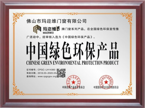 瑪邇維門窗堅持“科學設計、節能環保、精工制造”的生產理念,堅持打造好門窗、注重環保的理念,嚴格控制生產鏈中資源的有效利用,實現產品價值最大化,平衡利益與環境的關系,不斷投資生產設備改善落后的生產環節,并以良好的質量和技術服務榮獲“中國綠色環保產品”榮譽證書。