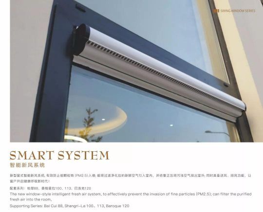 一些新豪軒鋁合金門窗產品還可以配備智能新風系統,可以有效防止微粒(PM2.5)的侵入,將過濾凈化后的新風引入房間,并通過正壓將臟空氣排出房間,從而進一步將室內排風中的冷熱與新風進行交換,降低新風的冷熱能耗。