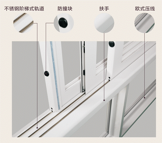 這個(gè)推拉窗外框選用嵌入式結(jié)構(gòu),窗戶(hù)防盜性、氣密性、防水性能更優(yōu);不銹鋼階梯式軌道,自帶擋水邊,密封防水且便于打掃衛(wèi)生;上滑軌有特殊的防墜膠塊,可避免窗戶(hù)跳軌,增強(qiáng)安全性能;二點(diǎn)鎖設(shè)計(jì),安全防撬。另外,可以增加窗臺(tái)扶手,使窗戶(hù)美觀大氣,可以支撐窗戶(hù),可以充分看到無(wú)盡的美景,可以廣泛應(yīng)用于豪華住宅的陽(yáng)臺(tái)窗戶(hù)、花園窗戶(hù)、臥室窗戶(hù)等空間。