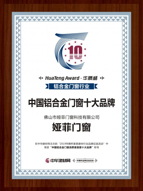 婭菲門窗自成立以來,取得了巨大的成就和卓越的業績,用自己的努力征服了許多消費者和經銷商。現在婭菲門窗不僅是消費者的最愛,也是加盟商的瑰寶。此次,婭菲門窗在由“中華建材網”打造的中國家居建材行業首屆“華騰杯”品牌評選活動中獲得了“2019中國鋁合金門窗消費者喜愛十大品牌”。