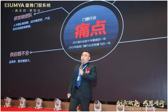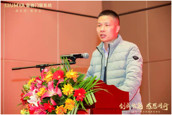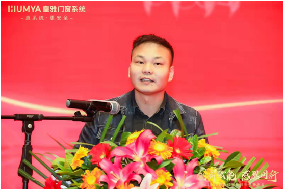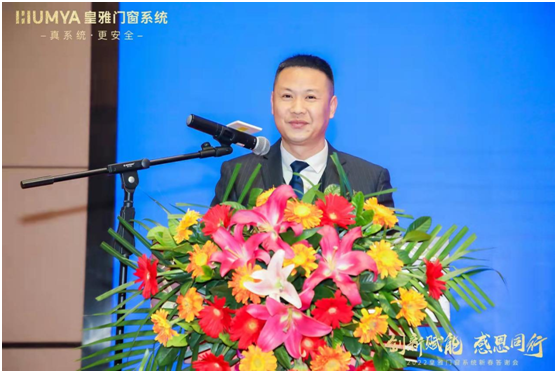 緊接著,答謝會迎來了最為激動人心的時刻——皇雅門窗系統2022新品發布會,皇雅招商中心總經理周志文先生為我們揭開2022皇雅門窗系統新品的神秘面紗!周總結合行業當下痛點及未來消費發展趨勢,引出皇雅門窗的品牌定位及產品優勢。他還為大家介紹皇雅門窗系統新產品融入了新的元素,除了在產品外觀上下足功夫外,還在技術上進一步突破,打造出顏值與性能俱佳的高端門窗產品。