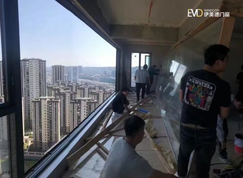 十多人的安裝團(tuán)隊(duì)小心翼翼地把幾百公斤重的玻璃吊到陽臺(tái)上,在固定好窗框后再一鼓作氣把玻璃裝進(jìn)窗框內(nèi),窗框和墻體之間,玻璃與型材之間都細(xì)致做好各處的密封和緊固,確保整體能承受大風(fēng)襲擊。整個(gè)加工和安裝一氣呵成,圓滿成功!