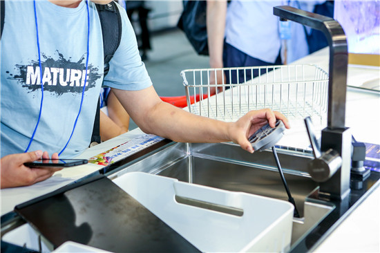此次展會上,我們帶來的新款智能水槽洗碗機,也是黑科技滿滿,聚焦清洗細(xì)分。首先,它能智能識別碗盤的污濁等級,針對中式餐具臟污程度不一的特點,設(shè)置了6大洗滌模式,應(yīng)對不同場景。其次,“分離式水流”凈水系統(tǒng),將自來水經(jīng)凈化處理分為超濾凈水、軟水,以及普通自來水,實現(xiàn)不同需求分質(zhì)供水。軟水洗碗不留水漬,使餐具、瓷器光潔如新,并且軟水可以使油污分解效果更佳,從而減少使用洗滌劑,大大利于環(huán)保。