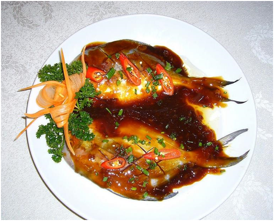 魚無疑是年夜飯的“常駐嘉賓”,取“年年有余”之意。扁魚宰殺處理干凈后兩面劃上花刀,撒上適量生姜片、花椒、蔥白、料酒腌制10-15分鐘,糖、醋、老抽、生抽按照2:1:1:1比例,再加入60-70ml水,攪拌均勻后成為糖醋汁。當然你也可以用其它鮮魚代替。最后讓魚在糖醋汁里稍微燉煮一會,讓魚更加入味濃郁。