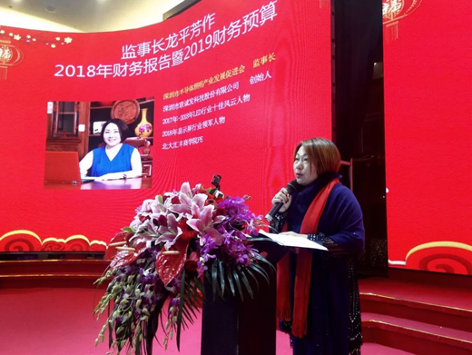 深圳市半導體照明產業發展促進會監事長龍平芳作深圳市半導體照明產業發展促進會“2018年財務收支及2019財務預算”報告,詳細介紹了促進會2018年的財務收支以及2019年財務預算情況。