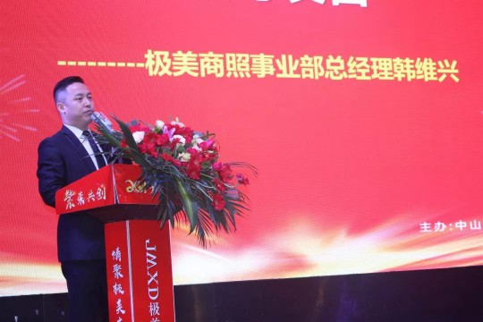 極美照明商照事業部總經理韓維興上臺致辭,他表示,極美照明成立以來,一直處在一個快速上升的階段,回顧2018年,極美照明整體發生了巨大變化,六大事業部業績也有大幅度增長,2019年,六大事業部將繼續發揚極美的團隊精神,一起奮發,斗志昂揚,超越目標,再創輝煌。