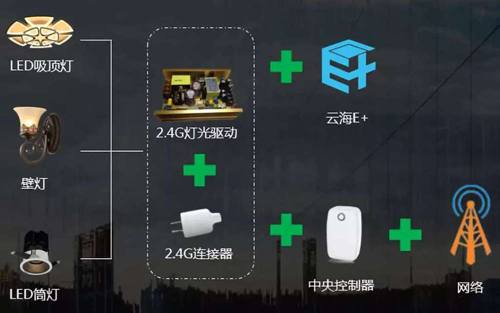 智能升級方案三:如果燈光驅(qū)動中含有2.4G通用模塊,需要配備2.4G連接器,亦能對燈具進(jìn)行智能化升級