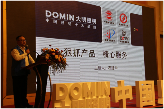 接下來,由大明照明副總裁石建華先生上臺就“大明照明產品戰略”進行了精彩的主題演講。石總著重提到:優化產品組合,增加產品附加值,以及緊跟市場發展潮流,為消費者提供高品質產品與服務,是大明照明永不動搖的初心與決心!
